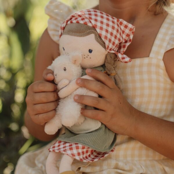Meet little Rosa, dressed in her sweetest skirt and apron, ready to show you around her farm! Her traditional outfit is completed with a colorful headscarf. Rosa adores everything about farm life. She happily works in the garden, cares for her beautiful flowers and gentle animals. Right now, she’s holding an adorable little lamb that will melt your heart! She’ll always be there to play with you or offer a warm hug whenever you need one. Countless delightful adventures await you together!