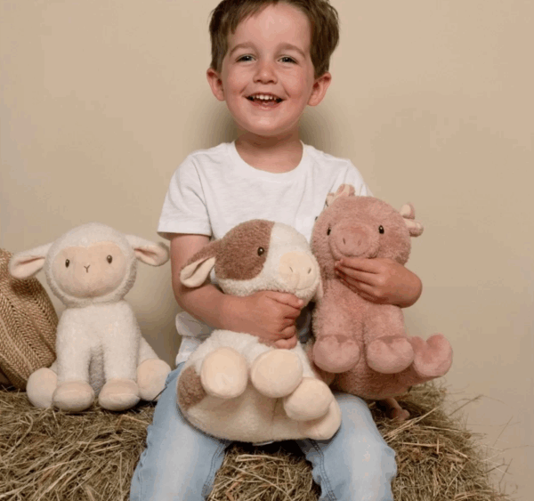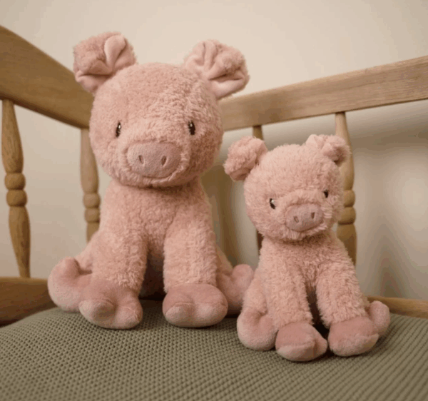 This little presence loves to play. This tiny piglet is made from wonderfully soft materials, making it incredibly gentle and cuddly. Specially designed for babies and curious little hands, this plush piglet is crafted from soft and safe fabrics that are kind to a baby’s skin—perfect for snuggling, hugging, and providing comfort all day long. Your little miracle will adore this colorful plush cuddle buddy and explore the world with their new friend. The height of this plush toy is 25 cm.