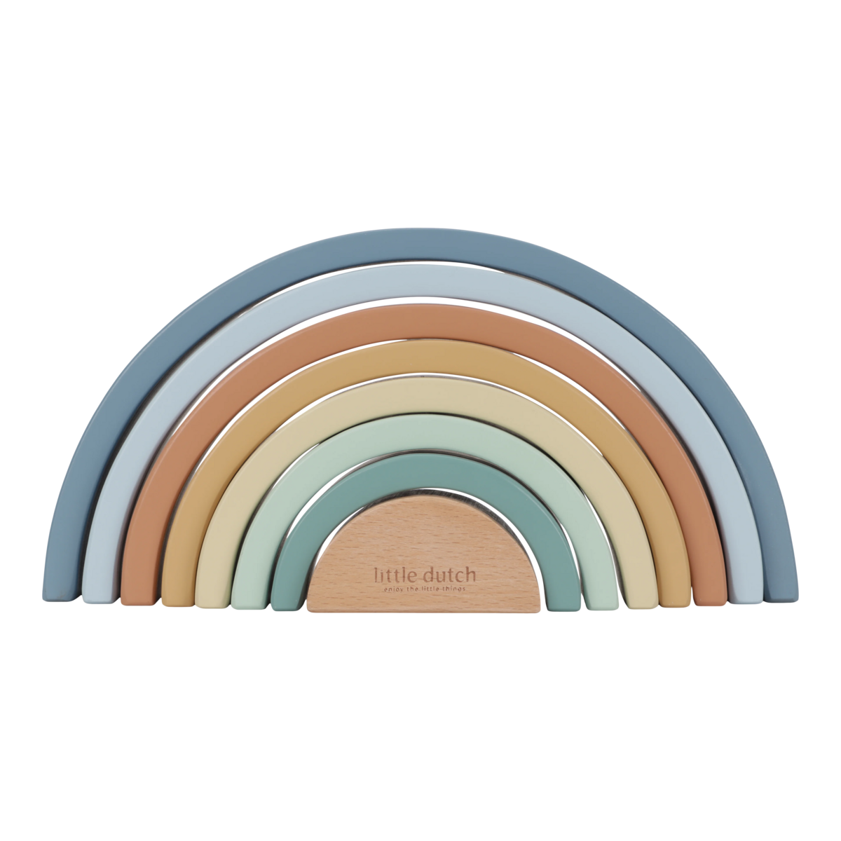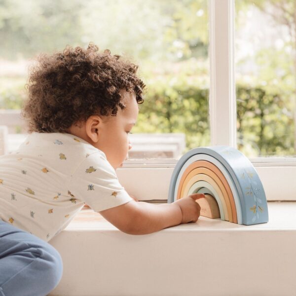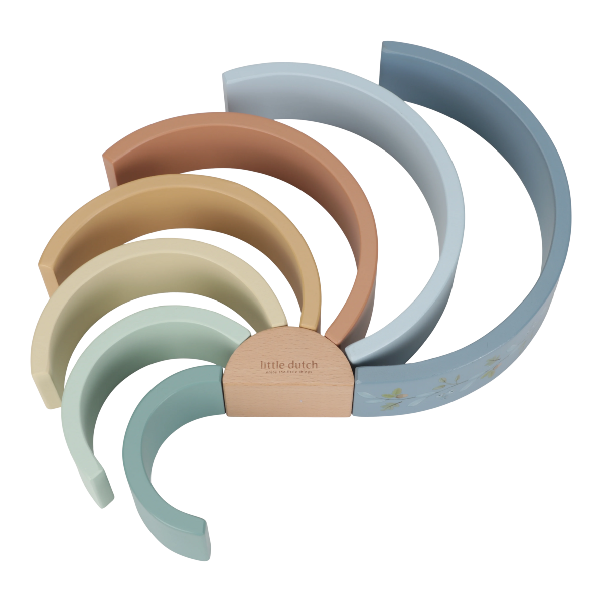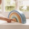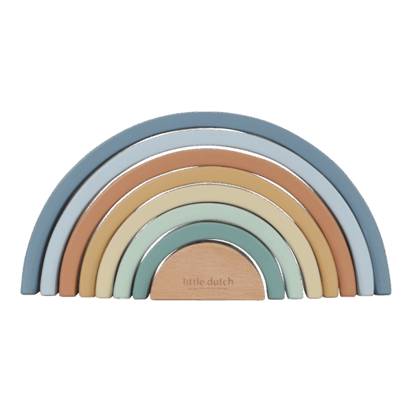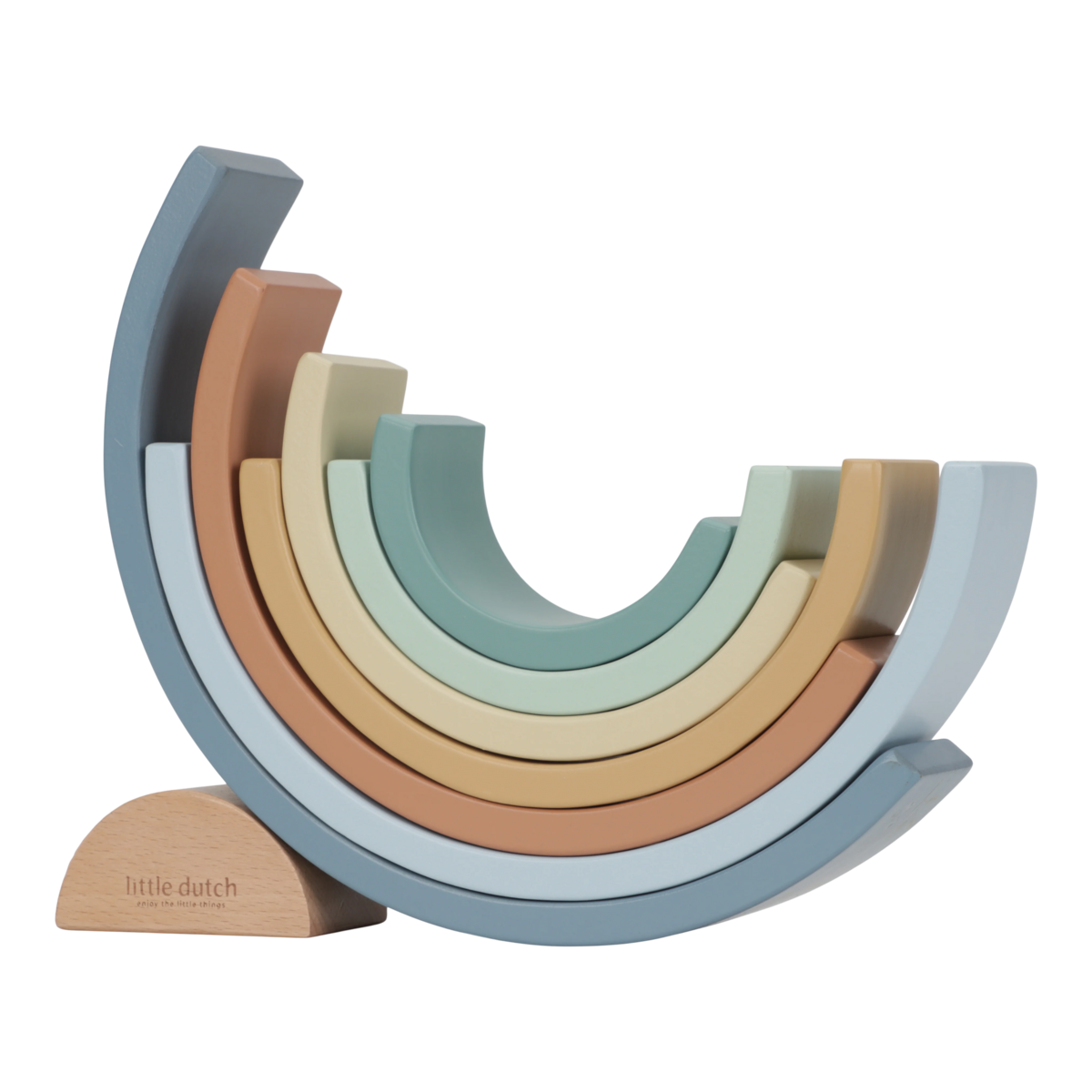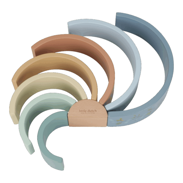 Ova predivna drvena duga u nijansama plave, žute i zelene donosi neograničene mogućnosti za kreativnu igru – mnogo više od klasičnog slaganja duge! Pravi jedinstvene skulpture, stvori tunel za vozove i automobile ili osmisli sopstvene avanture! Ova igračka izrađena od prirodnog drveta podstiče razvoj fine motorike i maštovitu igru, dok pomaže mališanima da istraže svoju kreativnost.