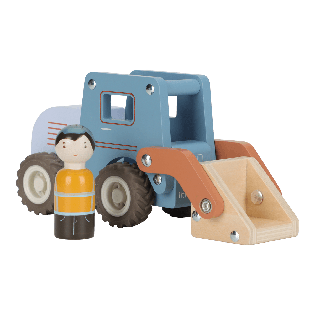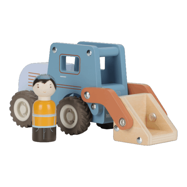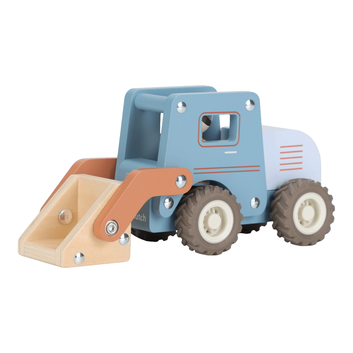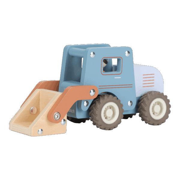 Sa ovim drvenim bagerom lako možeš da podigneš teret velikom kašikom i pomeriš ga gde god treba. Čvrsta konstrukcija i gumeni točkovi omogućavaju glatku vožnju, a u kabini je mali drveni građevinac spreman za rad. Bager je odličan za igru i u kući i napolju – dovezi se do brda peska, iskopaj duboku rupu i premesti sav pesak velikom kašikom.