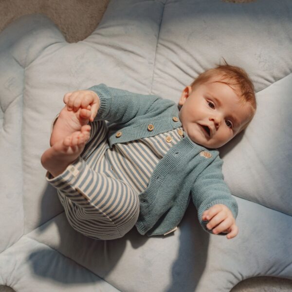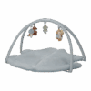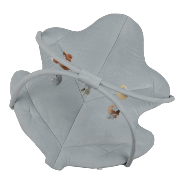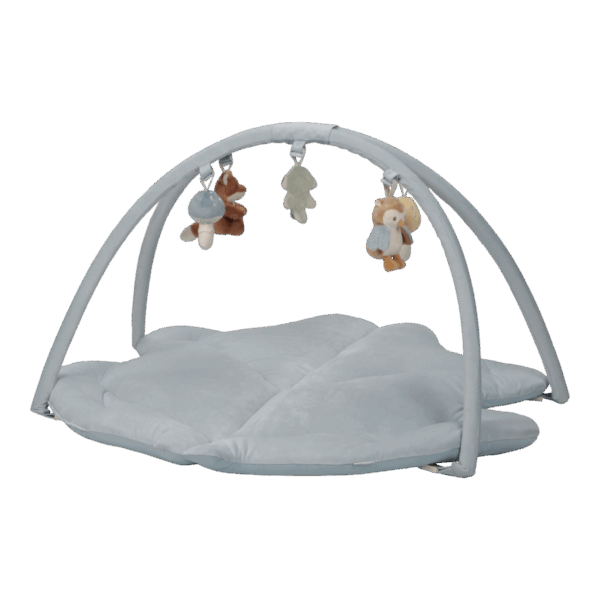 Ova prostirka u obliku lista, u nežnoj plavoj boji, pretvara svaki trenutak u uzbudljivu avanturu za vaše dete. Prostirku krase dve somotske prečke na kojima visi pet različitih mekanih igračaka iz kolekcije Forest Friends. Mali lisac, mudra sova, žuta i plava pečurka, kao i listić, dizajnirani su da podstiču razvoj senzornih veština i koordinaciju ruku i očiju