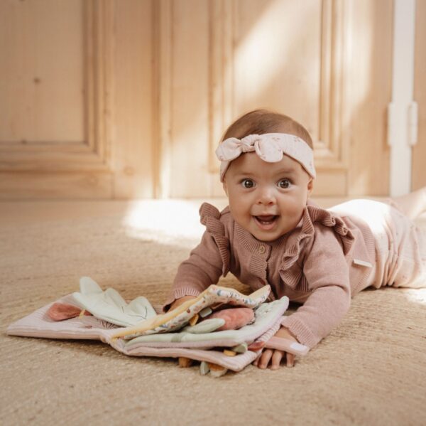 Predivna i nežna srna poziva te da zaviriš u čarobni vrt. Igraj se sa raznim materijalima i aktivnostima, kao što su ogledalce, zvečka i šuškavi igrači. Mekana knjiga takođe sadrži različite etikete koje će tvoja beba voleti da dodiruje.