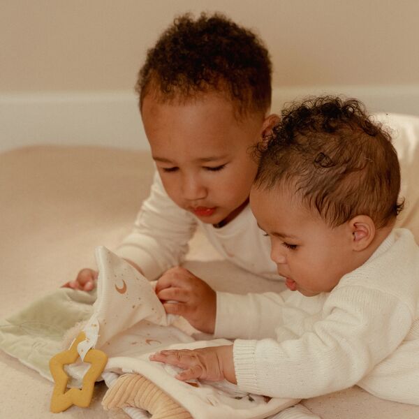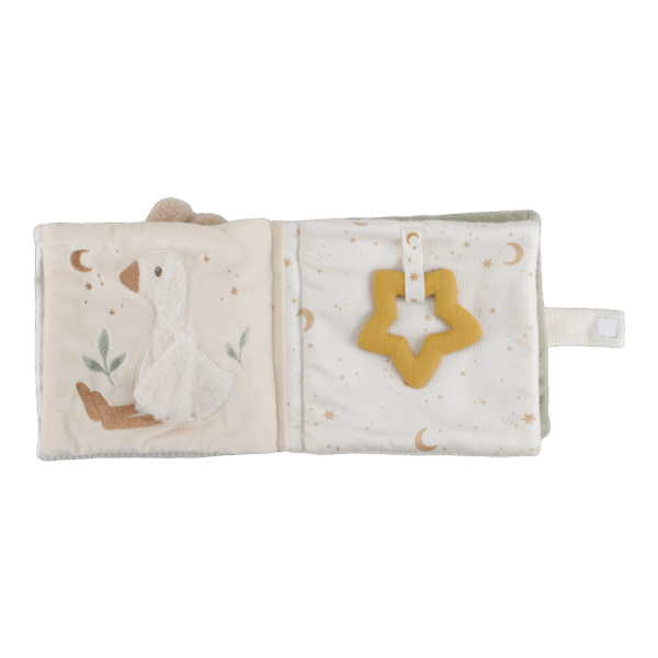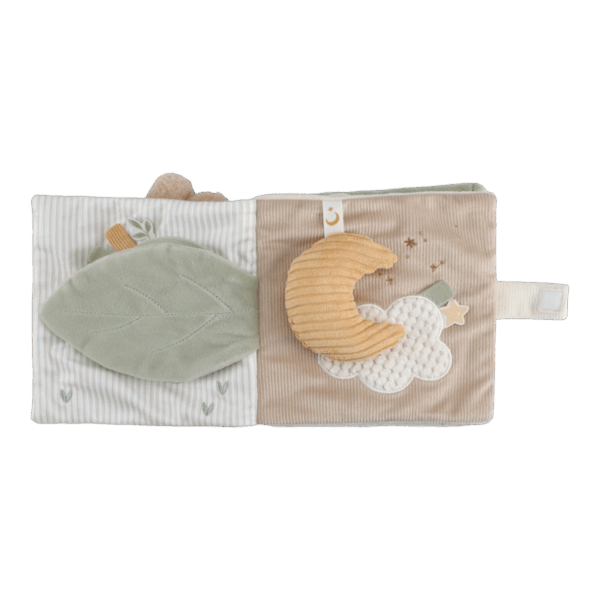 Svaka strana knjige poziva na igru – sa mekanim tkaninama, šuškavim zvucima, razigranim trakicama i sigurnim ogledalom za osmeh. Sve to stimuliše čula i podstiče radoznalost.