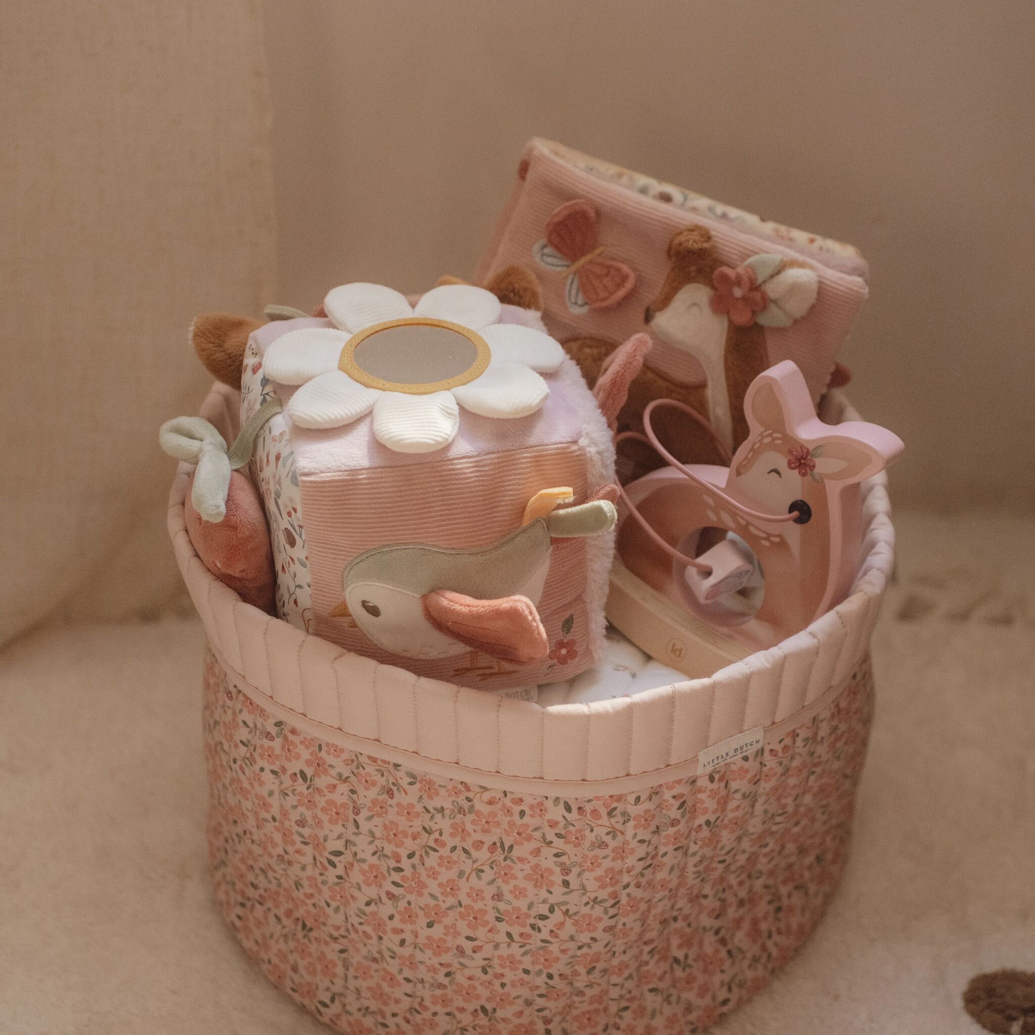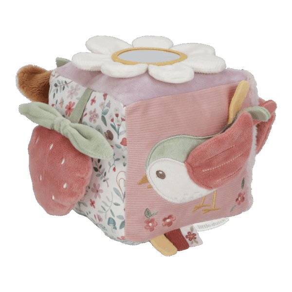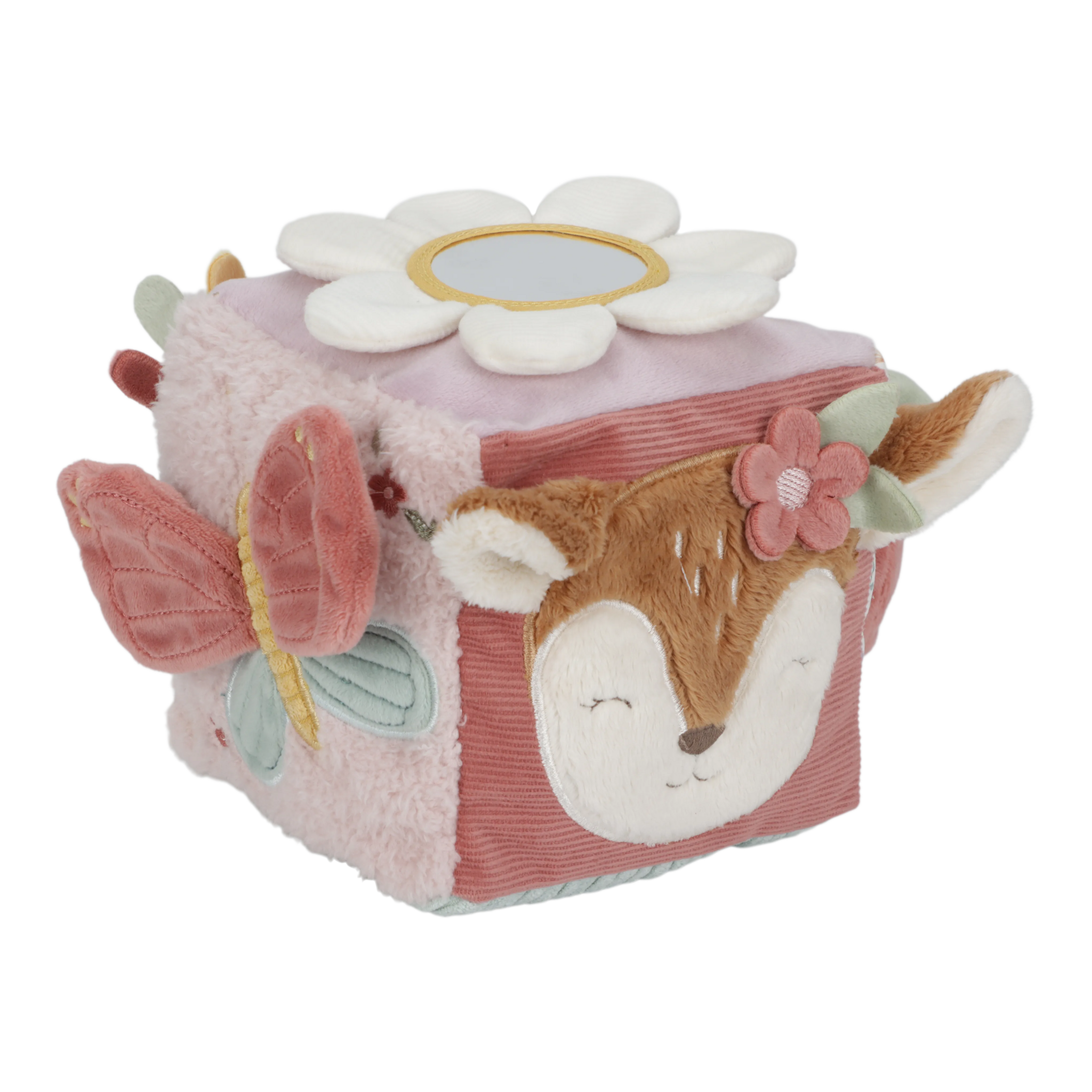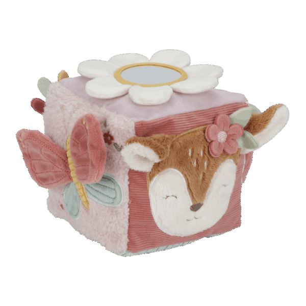 Pridružite se srni, ptičici i leptiru u avanturama kroz Fairy Garden uz ovu mekanu i šarenu aktivnu kocku. Svaka strana kocke nudi drugačiju aktivnost, sa raznovrsnim teksturama, oblicima i stimulativnim elementima. Vaša beba može da je hvata, okreće i istražuje. Posebna atrakcija je ogledalo u obliku cveta, savršeno za samootkrivanje. Ova aktivnost kocka pruža beskrajnu zabavu, dok istovremeno razvija čula i motoričke veštine deteta.