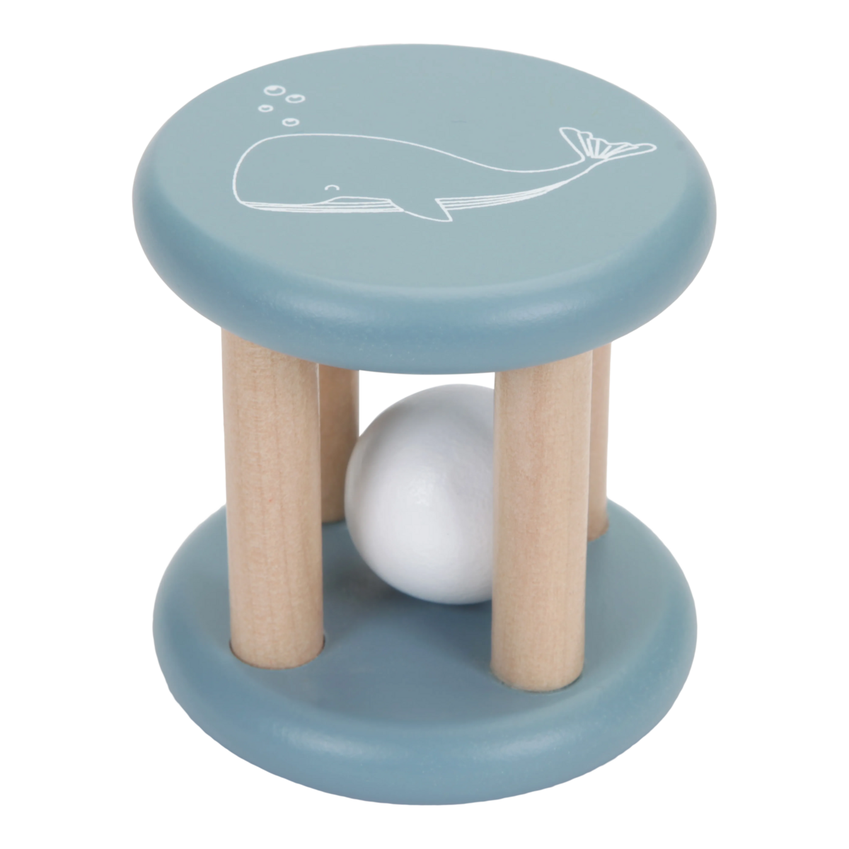 Ova zvečka je napravljena od punog drveta i obojena netoksičnim bojama na bazi vode, čineći je potpuno bezbednom za decu. Može se koristiti tako da se kotrlja ili da se drži za rešetke, pružajući malim rukama raznovrsne načine za istraživanje i zabavu.