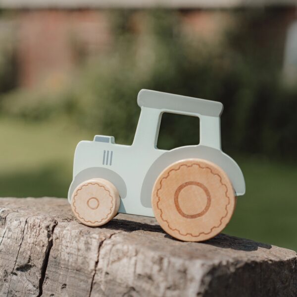 Drveni traktor Little Dutch izrađen je od izdržljivog drveta, pružajući mališanima beskrajno zadovoljstvo u igri. Traktor dolazi u prelepoj zelenoj boji i opremljen je drvenim točkovima koji se glatko kotrljaju. Osim što je odlična igračka, ovaj traktor je i divan ukras za bebinu ili dečju sobu, dodajući prostoru šarmantan i topli dodir.