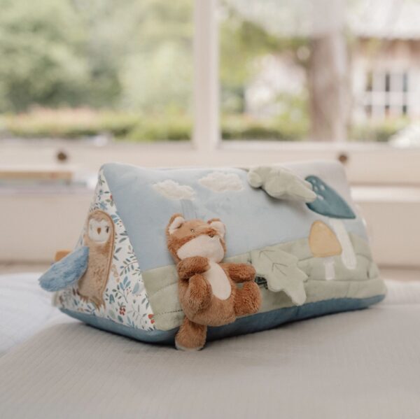 Ovaj svestrani i zabavni aktivni trougao vodi mališane na putovanje kroz čarobnu šumu tokom vremena na stomaku. Tokom avanture, tu je mnogo toga za istraživanje! Od šuštećih listova do malog ogledalca za samoproučavanje, svaki deo ovog trougla nudi igračke koje će podstaći maštu vašeg mališana. Puno razigranih funkcija i zanimljivih tekstura učiniće da se dete zabavlja i razvija svoja čula.