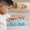 Ukrcaj se na čarobno putovanje kroz začaranu šumu! Hajde da složimo ove blokove jedan po jedan i kreiramo tri vagona ovog prelepog drvenog vozića.